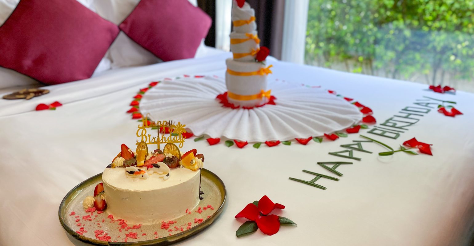 • Decoration package including balloons, flowers, candles, and a birthday cake in room