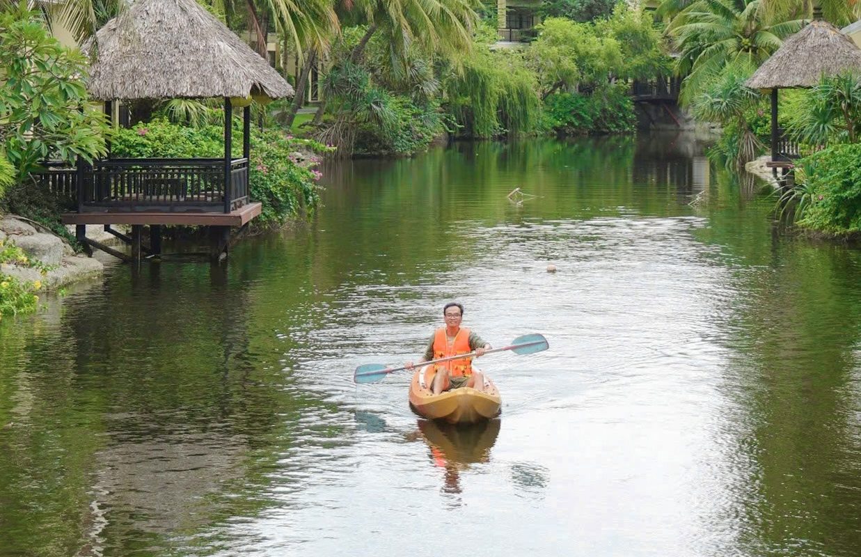 • One-hour kayaking journey on the Đe Vong River, offering tranquil sunrise or sunset views with full safety support from our lifeguard